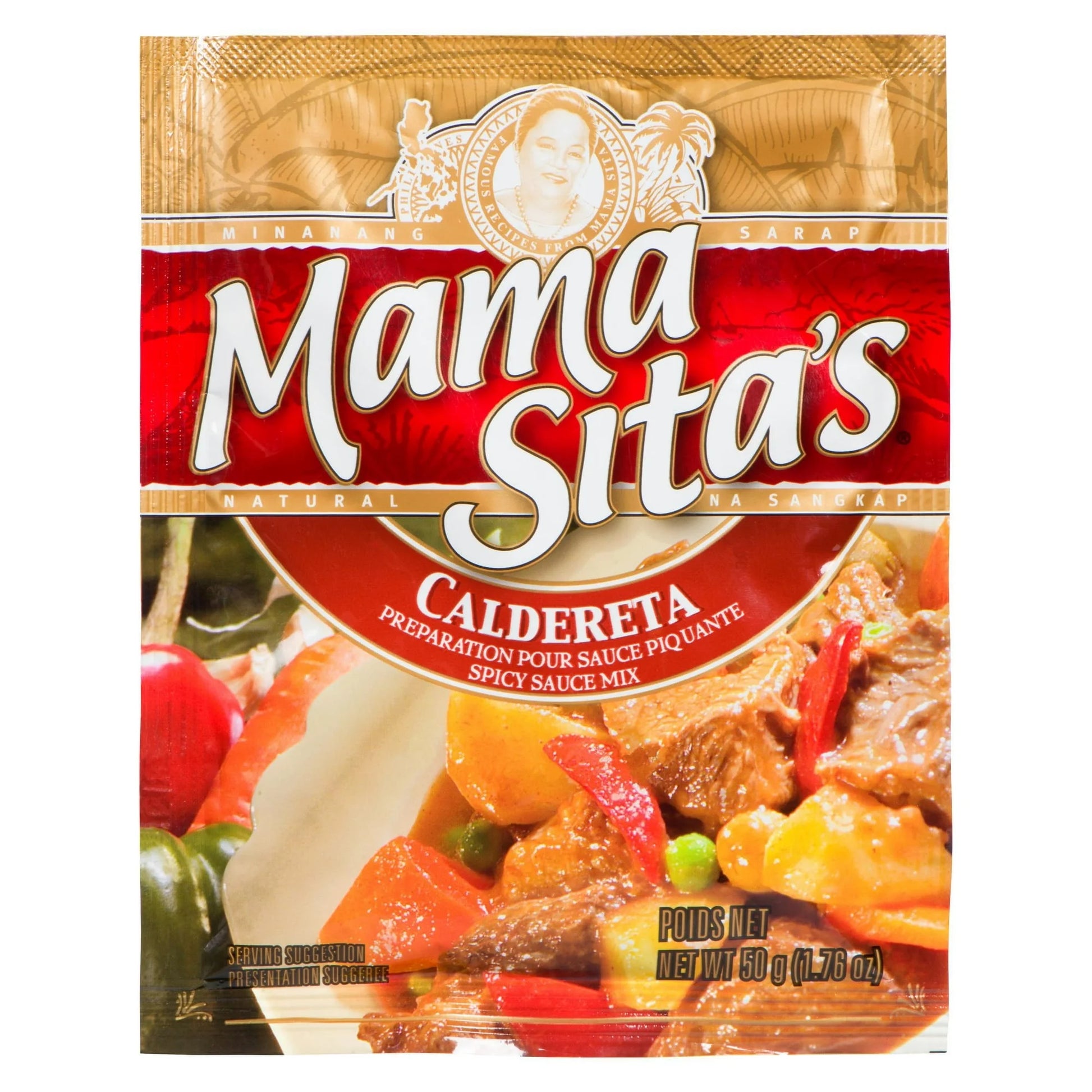 Mama Sita's Caldereta Mix is a convenient seasoning mix designed to make the popular Filipino beef, pork, or chicken stew, caldereta. It contains a blend of spices, tomato powder, and other seasonings to create a hearty, savory, and slightly spicy sauce with a rich tomato base, aiming for an authentic, homemade taste. The mix typically includes tomato powder, cane sugar, salt, and spices like paprika and chili, with other ingredients like garlic powder, rice flour, and citric acid for flavor.
